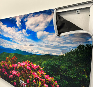 ET9019 Nirvana BOB is the eco-conscious evolution of our acclaimed GF4019 Nirvana BOB, hailed as the breakthrough banner fabric of 2018. Made from 40% post-consumer recycled yarns, ET9019 features a printable white face and a finished black back, offering a two-in-one solution for printable fabric with a built-in liner. This innovative design not only enhances print quality but also reduces material waste and streamlines production processes, delivering cost savings in both material and labor. Main soft signage uses include backdrops, hanging banners, roll-up banner stands, and SEG. Key features include its luxuriously soft hand, excellent white point, and the ability to cold cut with ease. With 100% opacity, this fabric ensures vibrant, true-to-color prints without any show-through, guaranteeing superior visual impact for any application. Stocked in 126-inch rolls, ET9019 Nirvana BOB maximizes production efficiency for large-scale banners. Weighing 7.7 osy and flame retardant, it meets safety standards.